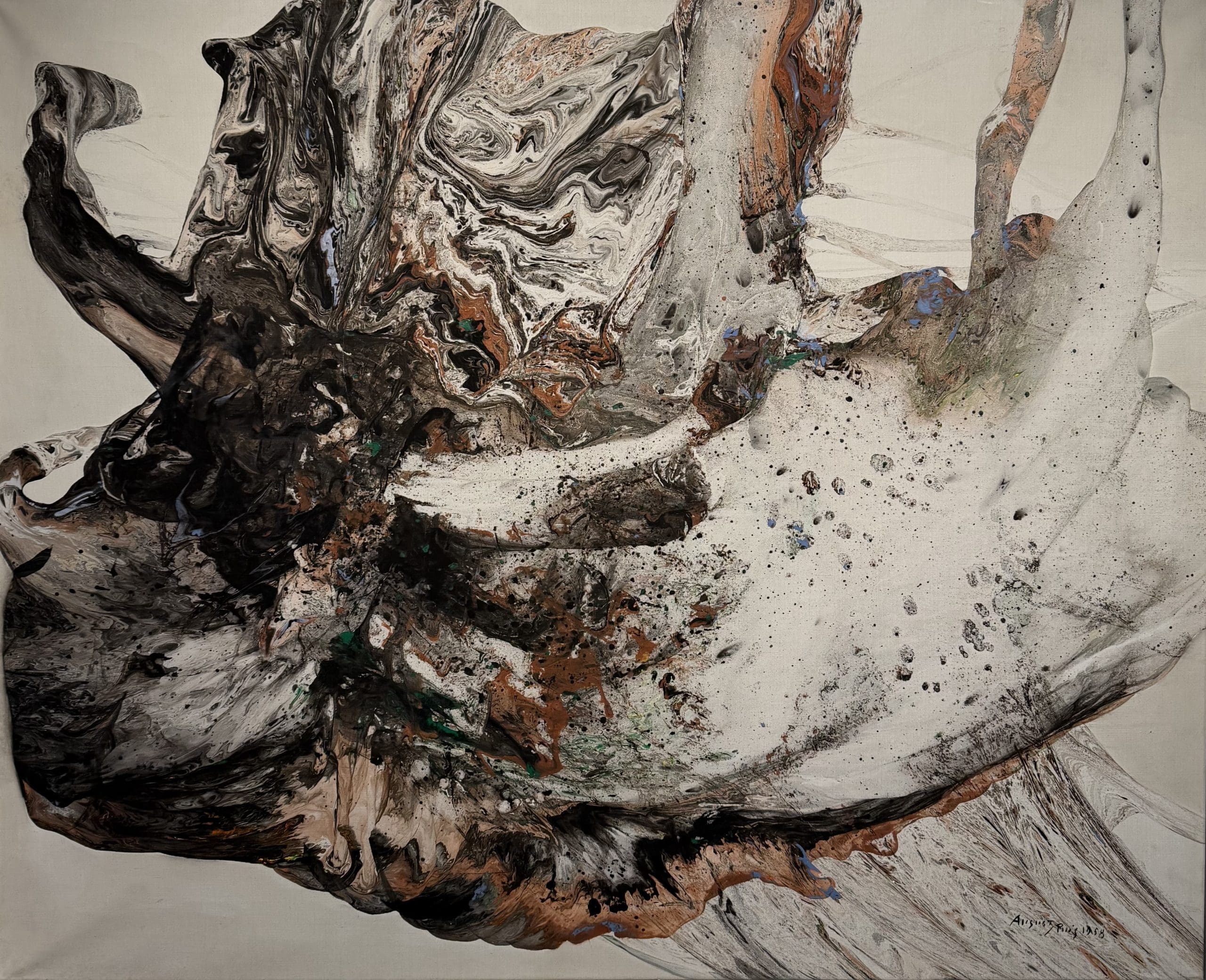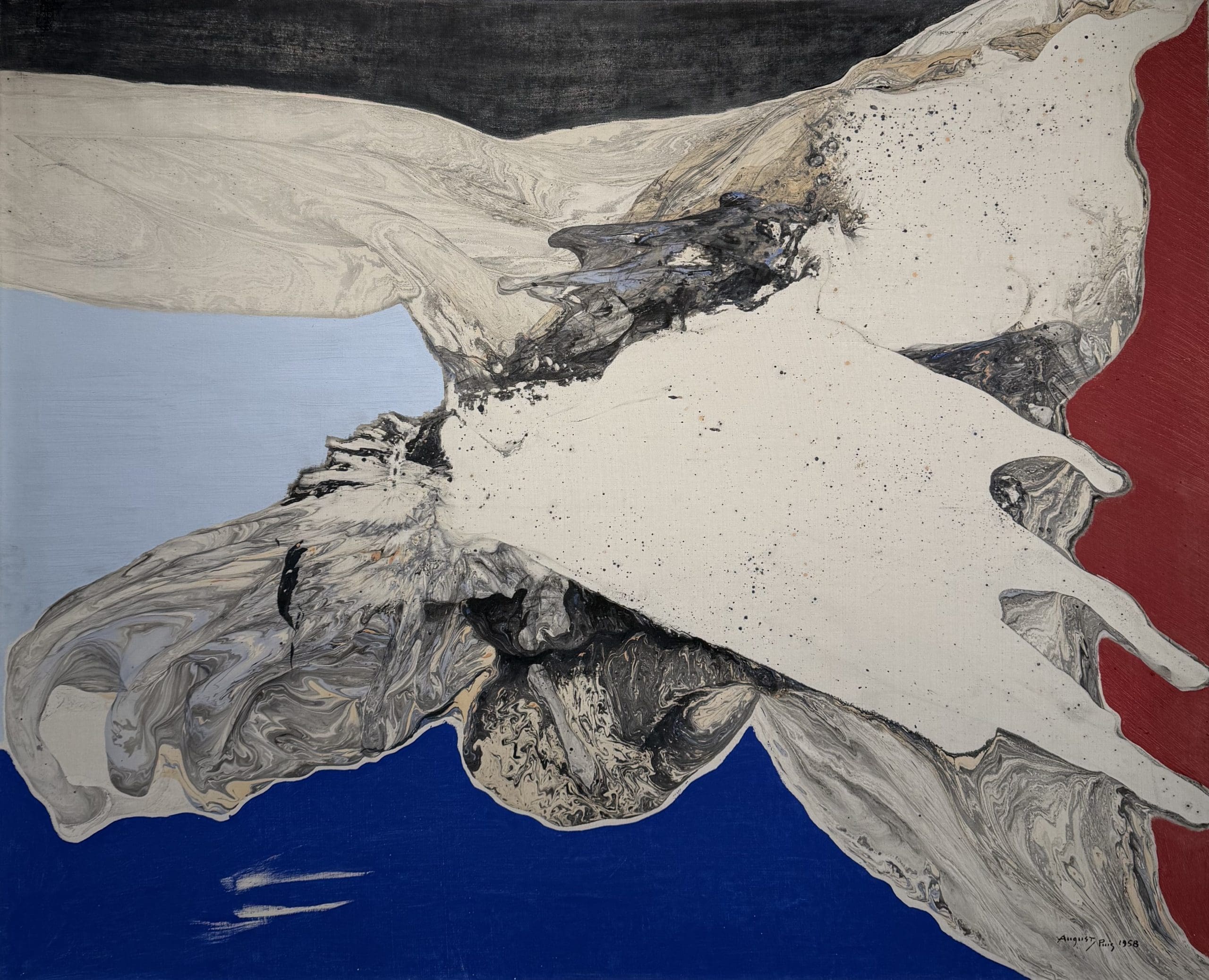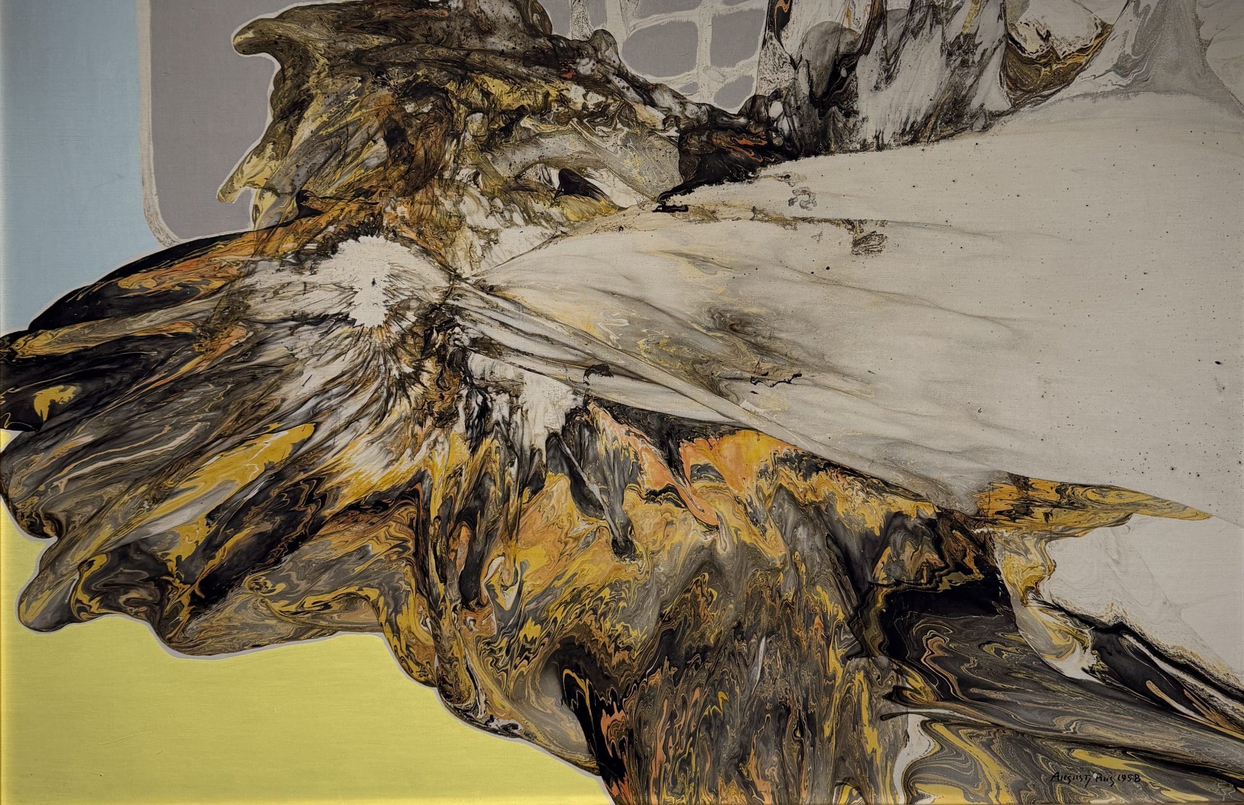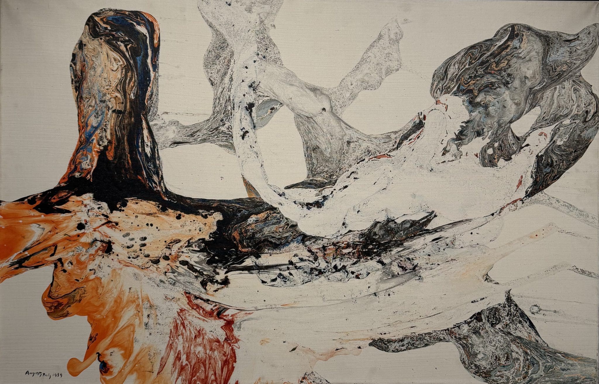 August Puig exhibited his work for the first time in 1946 — before his success in winning the prize at the Exposición Internacional Unión Arte de Bilbao — in an exhibition in Els Blaus de Sarriá, along with the work of Juan Tort, Ponç, Boadella and the text from J.V. Foix. It was the first postwar exhibition of avant garde art. The exhibition provided an historic moment in Spanish art: the first totally abstract paintings ever produced by a Spanish artist. They were the work of seventeen-year-old August Puig.