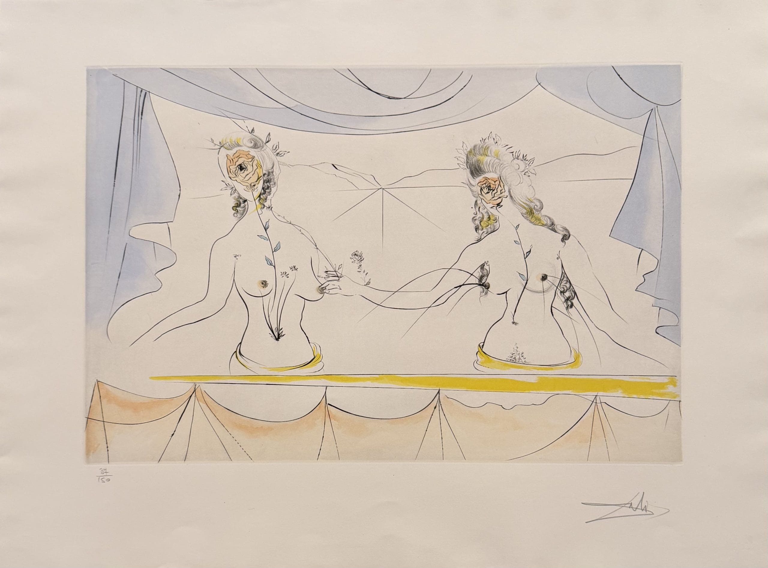 Salvador Dalí was born on May 11, 1904, in Figueres, Spain. From an early age Dalí was encouraged to practice his art, and he would eventually go on to study at an academy in Madrid. In the 1920s, he went to Paris and began interacting with artists such as Picasso, Magritte and Miró, which led to Dalí’s first Surrealist phase.